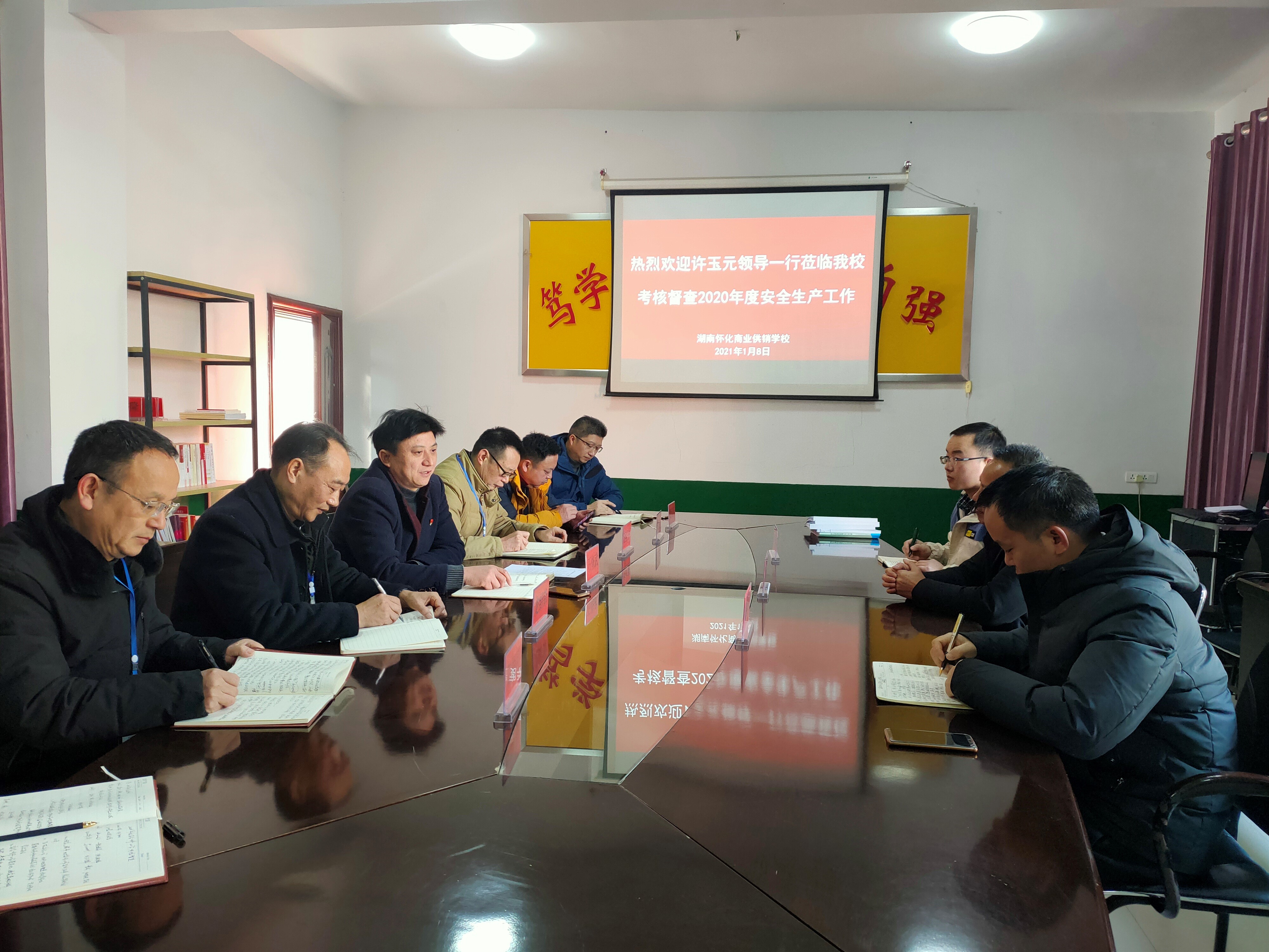1月8日上午,懷化市商務(wù)局黨組成員、副局長(zhǎng)許玉元一行來(lái)我校進(jìn)行2020年度安全生產(chǎn)工作考核督查,校黨委書記石修武,黨委副書記、校長(zhǎng)李紅彬,副校長(zhǎng)龍紹鋒、曹成、賀可兵,紀(jì)委書記陽(yáng)根民出席考核匯報(bào)會(huì)。
