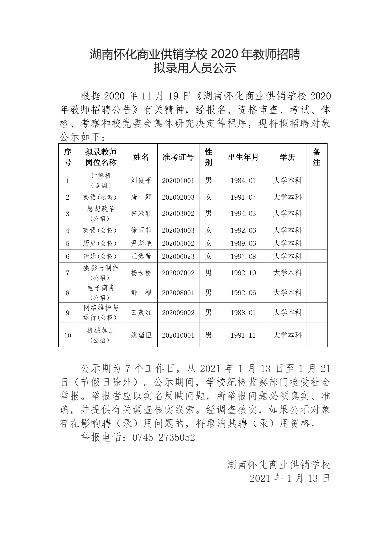 下一篇:湖南懷化商業(yè)供銷學(xué)校2021年引進(jìn)高層次及急需緊缺人才考察對(duì)象公示