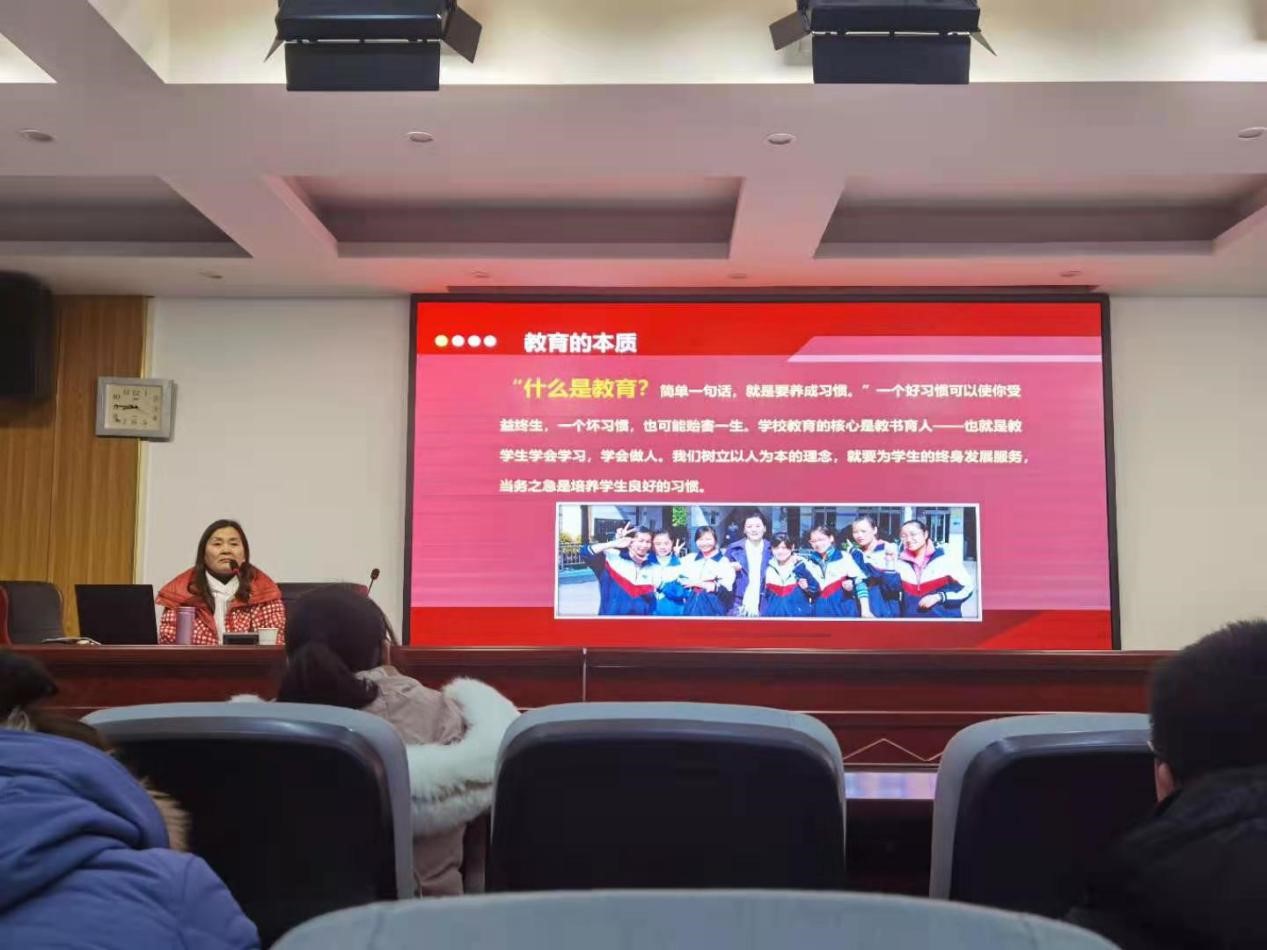為貫徹落實“十四五”開局之年的全國教育大會精神,深化教育改革創(chuàng)新,落實立德樹人根本任務(wù),持續(xù)加強班主任隊伍建設(shè),新年伊始,我校誠摯邀請懷化市柔性高層次引進人才暨我??妥淌凇?ldquo;2020年湖南省最美班主任”的獲得者王朝霞教授來我校傳授經(jīng)驗,1月7日晚舉辦以“用制度規(guī)范行為 用師愛開啟心鎖”的班主任管理能力提升專題講座,學(xué)校黨委委員、副校長賀可兵出席,學(xué)??瓶崎L鄒聽聞等全體成員及班主任參加。